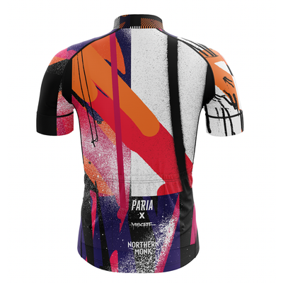 Add bold energy to your cycling wardrobe with the Northern Monk x PARIA men's short sleeve cycling jersey, part of an exclusive collaboration celebrating craft beer culture, street art, and performance cycling apparel.